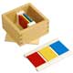 Color Tablets I: 2 red, yellow and blue swatches; one wooden box Box made by beechwood, color tablets made by plastic, color from CMYK