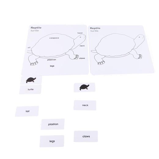 Introduce card materials after the child has explored real turtles and/or has worked with the puzzle.