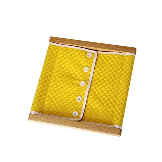 To teach the child how to button and unbutton. This exercise helps to develop the child's eye-hand coordination, concentration and independence.