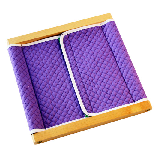 Hardwood frames measuring 12 X 13 inches. can be disassembled. To teach the child how to do and undo velcros.This exercise helps to develop the child's eye-hand coordination, concentration and independence.