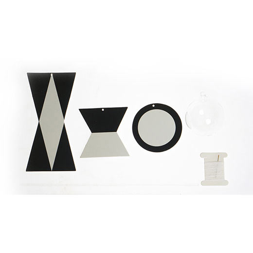 Munari 3 black and white cards, 1 glass ball, 1 set of manual sewing, 3 acrylic sticks, 1 manual
