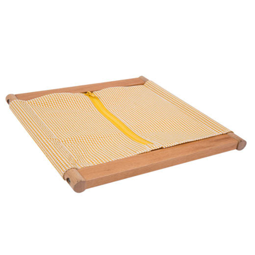 Dressing frame for infant and toddlers. Teaches how to use metal snaps buttons. Dimensions: 11 x 11.5 inches