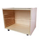 A hardwood puzzle maps cabinet that holds up to 8 puzzle maps with a small shelf for control maps. The cabinet comes with 4 self-lock wheels for easy mobility in the calssroom.
