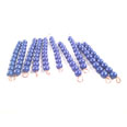 10 blue plastic bead bars of five. Used in a number of mathematical activities to help the child wor
