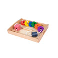 Stringing bead set consist of 8 colored shapes and 1 threads.This collection of 8 wooden geometric s