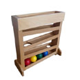 The Object Permanence Box with Tray contains a wooden box with tray and three wooden balls(red, yell