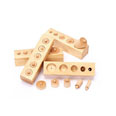 Set of 4 blocks with cylinders varying in height and/or diameter in each block. Made of solid hardwo