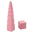 10 wooden cubes painted pink and width graduated in increments from 0.5 cm to 5 cm.